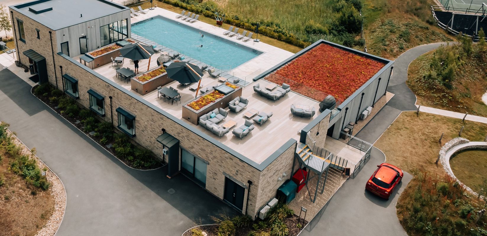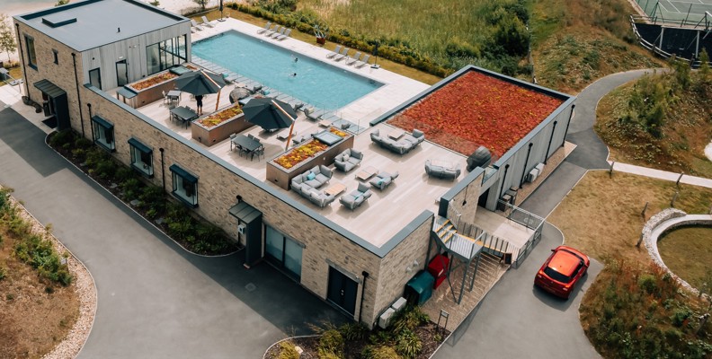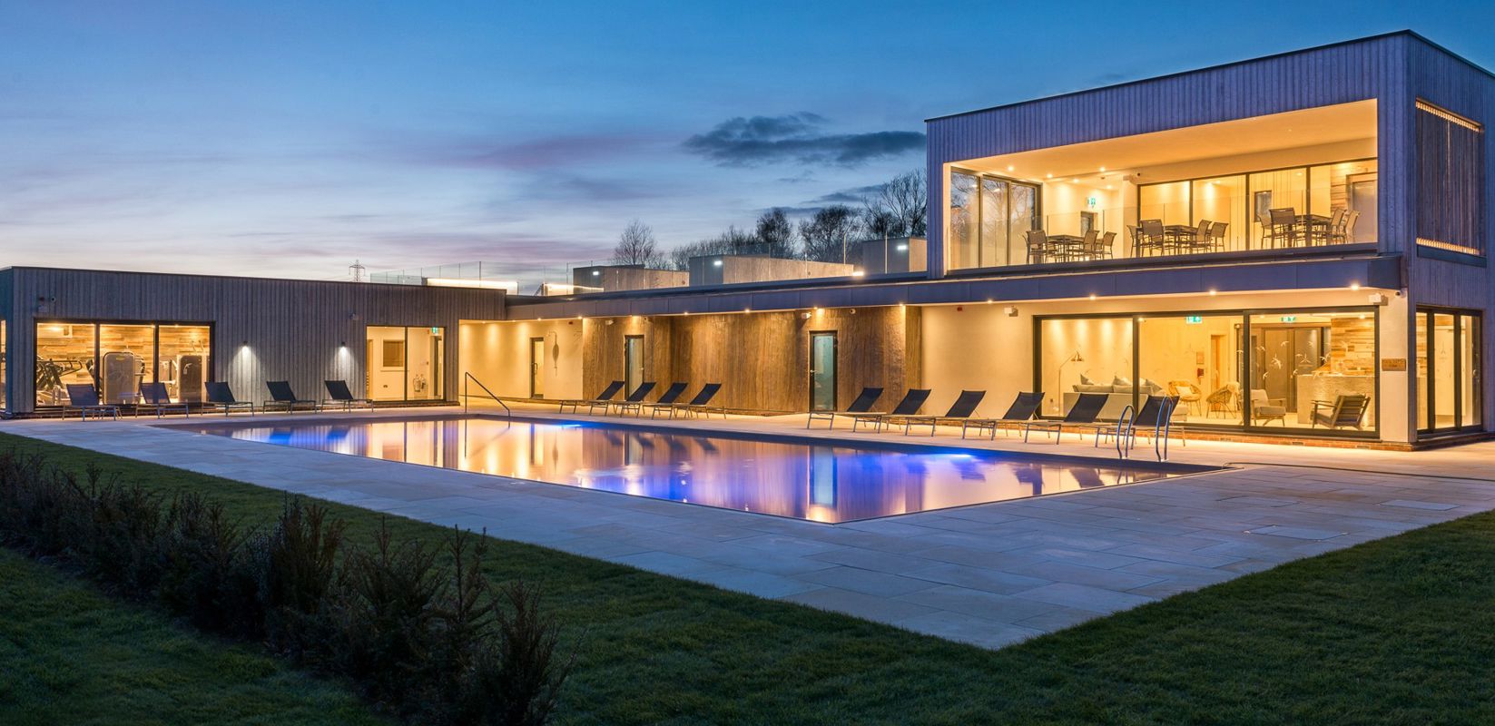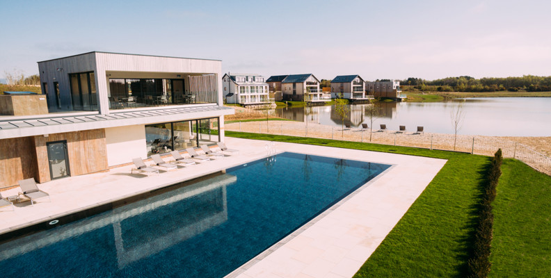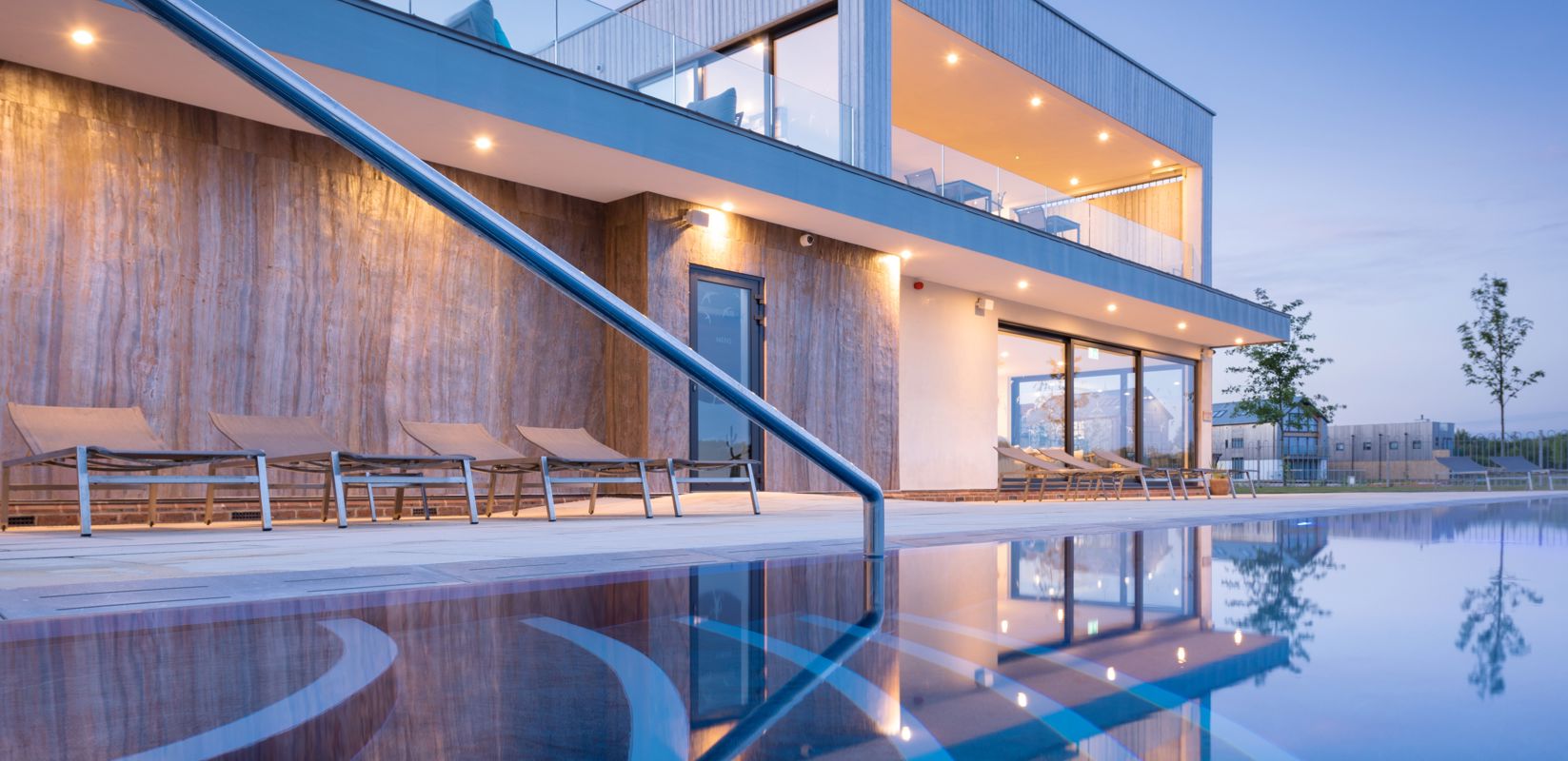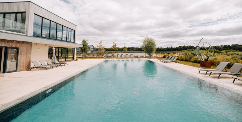 Set amidst the stunning Dorset countryside on the edge of the tranquil Beaumont Lake, the Hurricane Spa is at one with its surroundings, incorporating natural materials that reflect the warm seasonal hues of the outdoors.