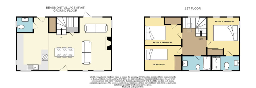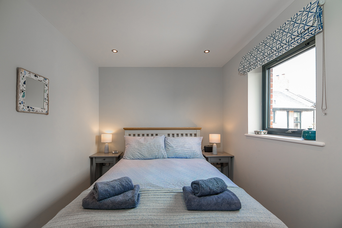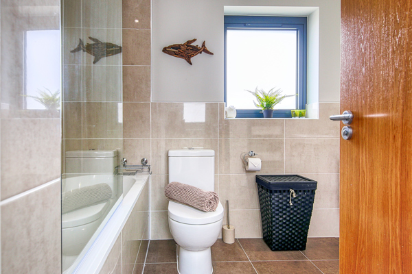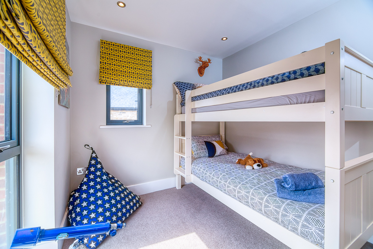 Upstairs there is one double bedroom with ensuite, a second double bedroom, a bunk room (top bunk suitable for a child only) and a family bathroom.