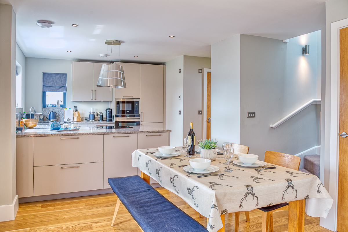 The property is self-catered. The house is fully equipped with cutlery and crockery. A complimentary welcome pack that includes locally produced jam, teabags, hot chocolate sachets, coffee, sugar, biscuits and a pint of milk will be provided for your arrival as will a starter kitchen pack including a bin liner, dishwasher tablets, a teatowel, sponge and washing up liquid. One toilet roll per bathroom is also provided to ensure you are equipped on your first day.