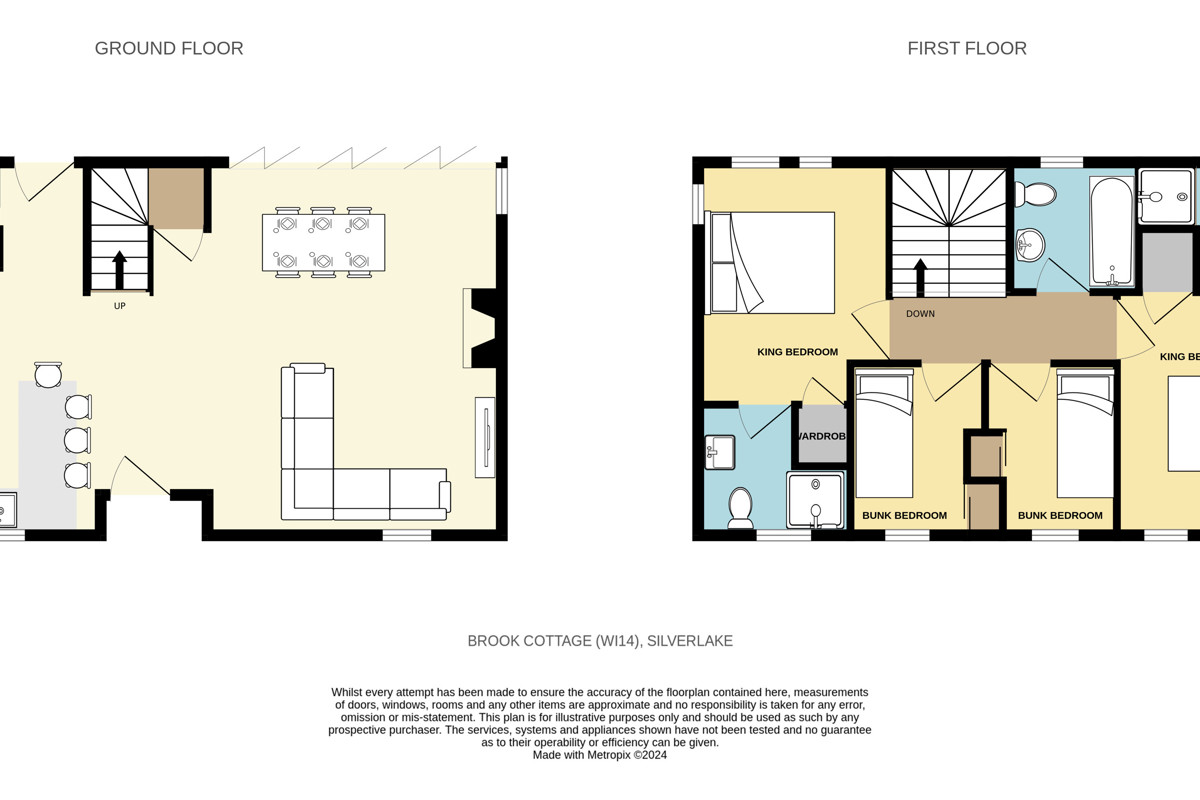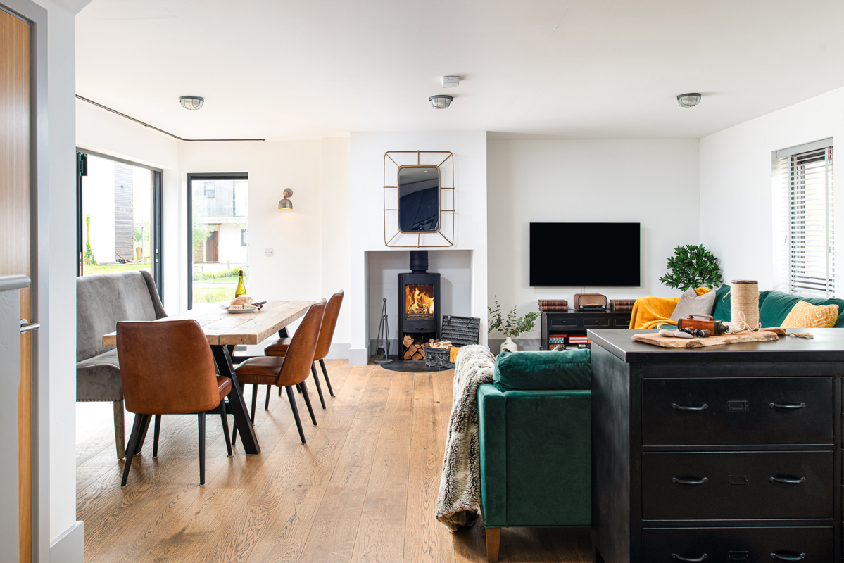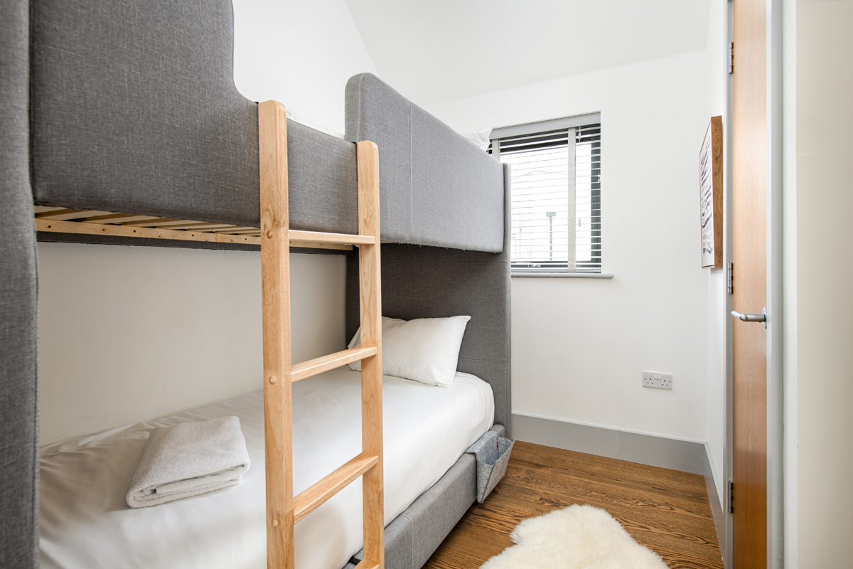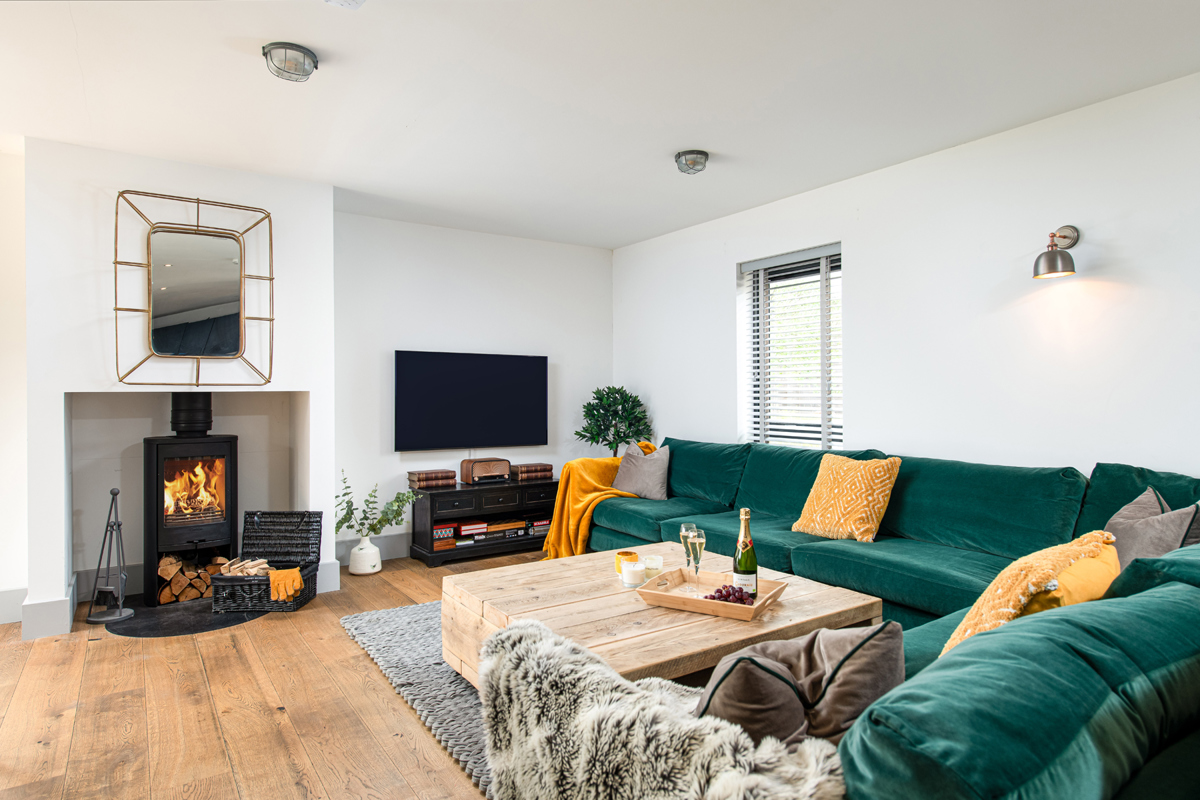 This delightful, and beautifully decorated home is suitable for both families and couples, with space for up to 8 guests. The ground floor features luxurious interiors, wooden floors, reclaimed wood furniture, a spacious L-shaped sofa, a wood-burning fireplace, and a dining table for 8 guests. The modern kitchen has all the amenities needed for a week-long stay. The utility room includes a washing machine, tumble dryer and a WC. Upstairs, there is a super king room with an ensuite bathroom, built-in wardrobe and TV, a king-size room with an ensuite and built-in wardrobe and two bunk bedrooms; accommodating a total of 8 guests. A family bathroom with a bath and shower completes the accommodation.