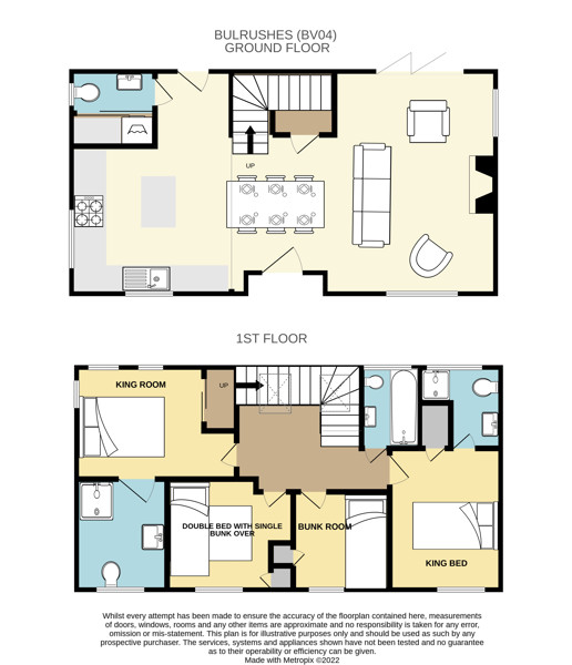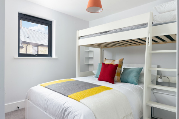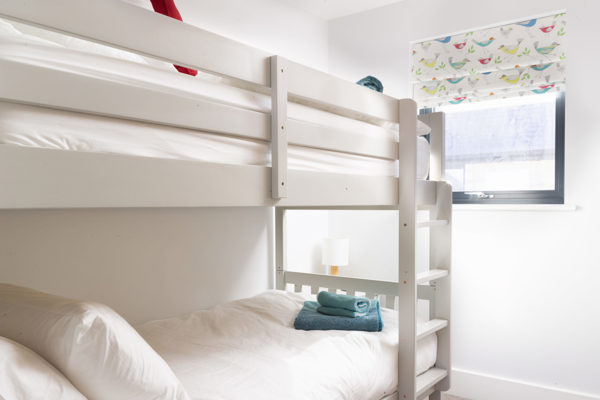 Sleeping up to nine people in comfort this property has two king sized bedrooms each with their own en-suite shower room and toilet. Bedroom 3 has a double bed with high sleeper bunk and bedroom 4 has extra-long bunk beds. The bottom of the bunk beds can accommodate an adult, or 2 in the double, however the top bunk is only suitable for child. There is a family bathroom, with bath and shower over. All bedrooms have fitted wardrobes.