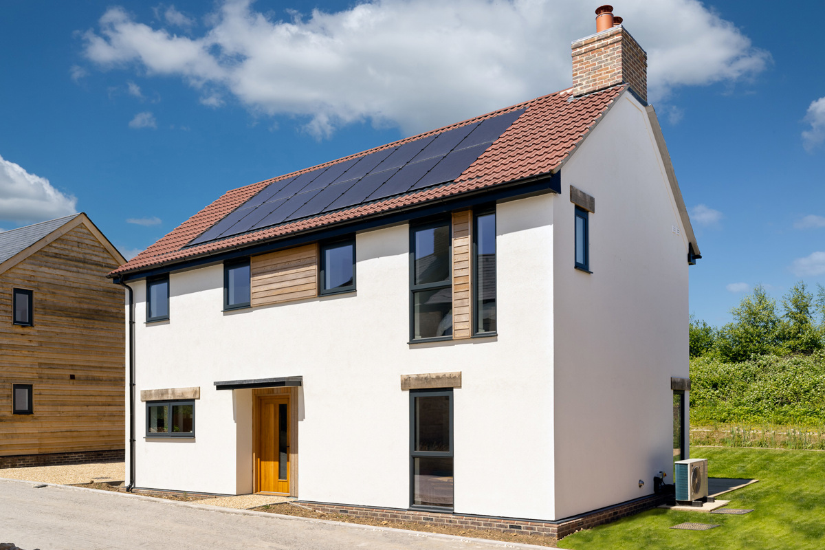 100% of the energy used in this house is electricity (no gas) from renewable sources – with a large proportion from the solar panels on the roof. For extra efficiency it has an air source heat pump and high levels of insulation –keeping it cooler in the summer and warmer in the winter.