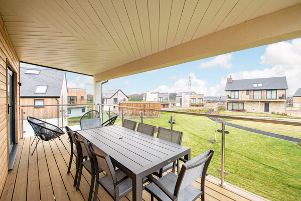 A double bedroom with en-suite and a king size bedroom lie on the ground floor, both with access to the ground floor decked area via sliding doors. A twin bedroom and family bathroom complete the ground floor accommodation.