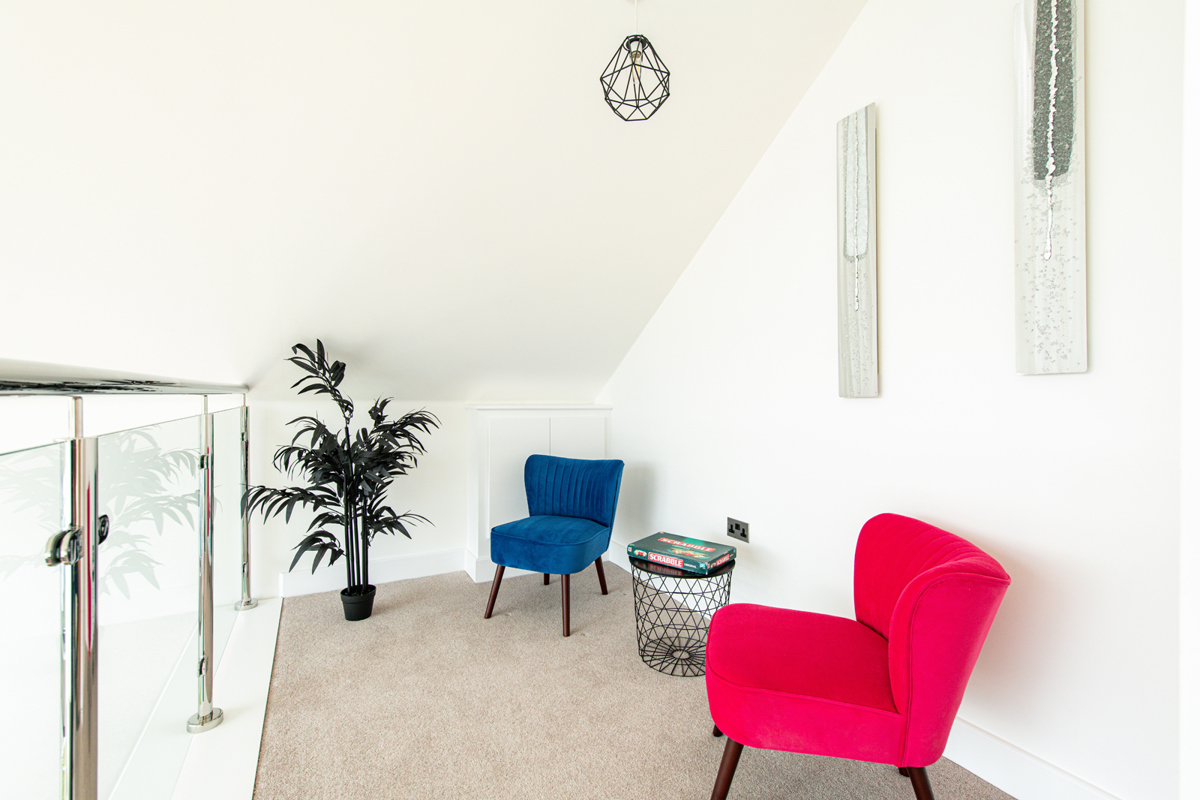 On the top floor, there is a large master bedroom with an en-suite, and cosy seating on the mezzanine level, providing the perfect spot to take in the views.