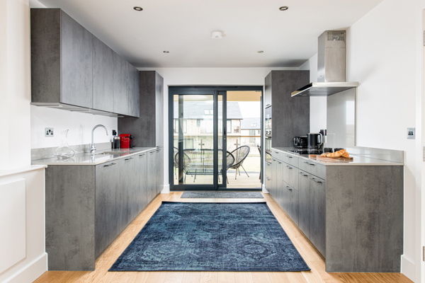 This exceptional holiday home with a stunning spiral staircase leading to the dining and living area on the first floor, providing plenty of space for enjoying a family holiday. An open-plan living room with a contemporary kitchen with all mod cons is perfect for cooking and entertaining.