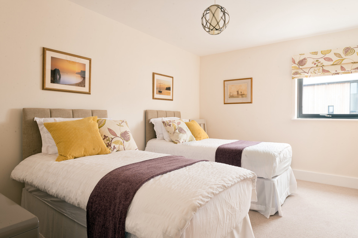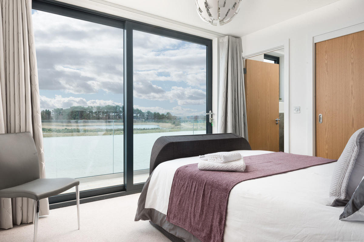The master bedroom provides access to balcony decking offering panoramic views over Beaumont Lake complete with king size bed with built in TV, touch sensitive reading lights and ensuite with large shower and rainmaker head. There is a second king size bedroom with breakfast balcony with an ensuite shower room with illuminated cabinet. You will also find a twin bedroom and a further bedroom with a pull out truckle bed, providing further twin beds