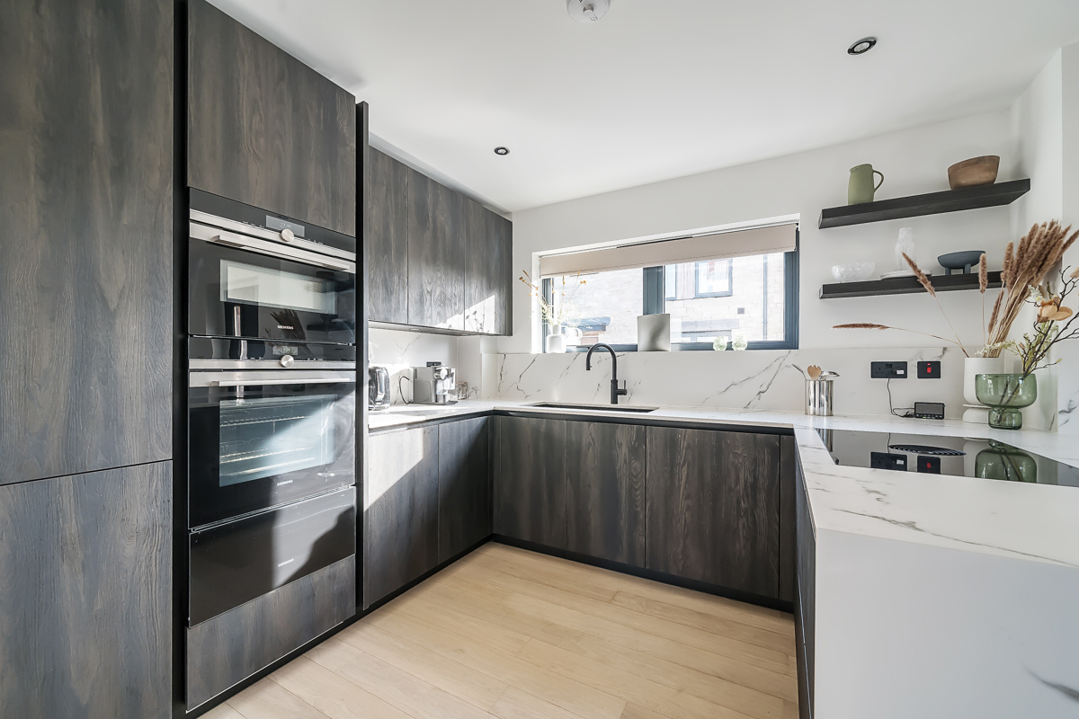 Outside, the rear decking leads onto a west-facing lawn and the property also benefits from a gravelled driveway at the back of the property that leads to the back entrance.