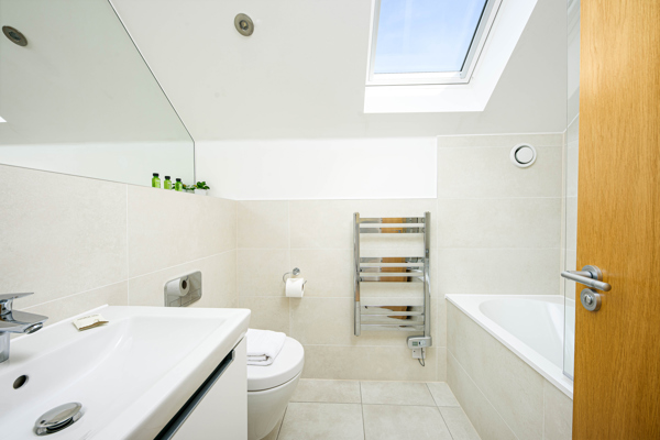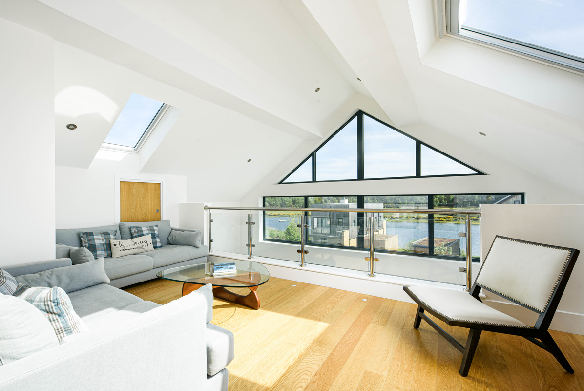 The top floor houses the impressive, penthouse-style master suite with a double bed, ensuite with bath and separate shower room. The hallway leads on to a light-filled mezzanine room with panoramic views.