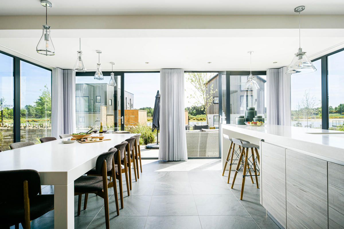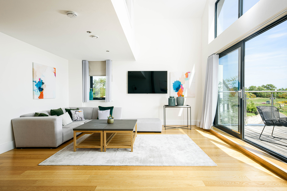 This fantastic space is ideal for a gathering of family or friends and fitted out to a very high standard, with thoughtful touches such as electric Velux windows and blinds and contactless phone charging built into the kitchen island.