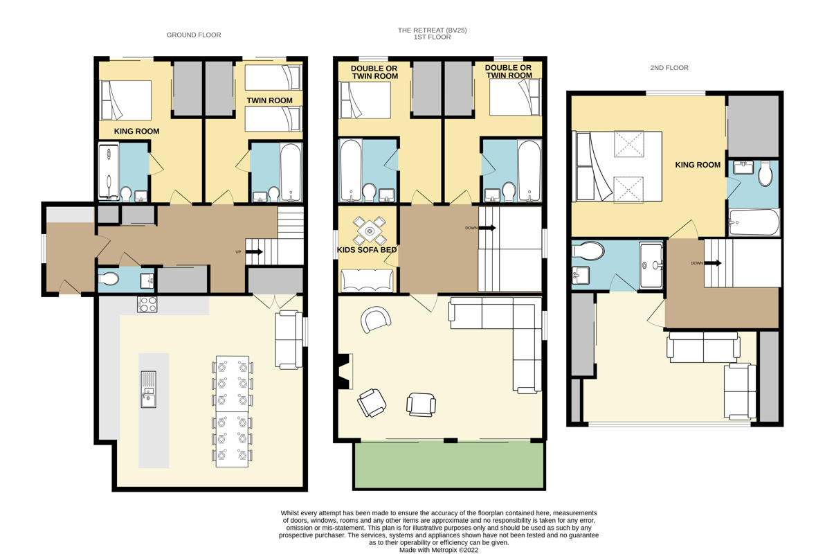 Two more super king bedrooms can be split into twin beds. Each bedroom on the first floor has either an ensuite shower or bathroom and a Juliette balcony. There is also a cosy children's playroom with a pull-out sofa bed (suitable for children only).